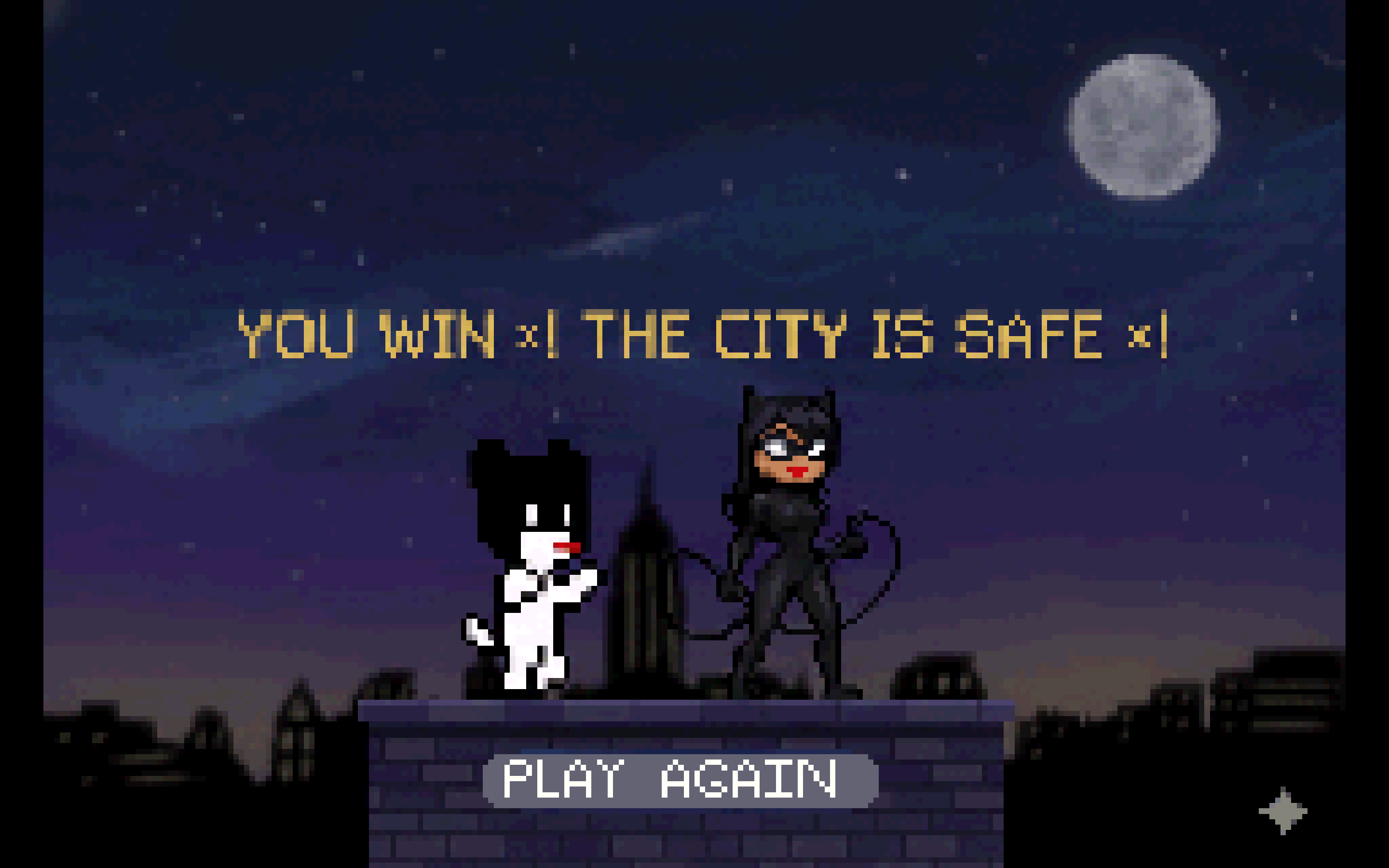 A 2D platformer game following the journey of BatCat, a cat who takes after Batman bent on saving the city and meeting his woman, CatWoman.